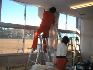 貼っただけで断然安心感が違います!校舎はグラウンドに面しているためボールがぶつかる事もしばしば・・・いつ割れるかと冷や冷やしておりましたが施工後は安心しております。また保健室では熱遮断とUVカット効果で体調の悪い子にも良い環境で休んでもらえる様になり大変喜んでおります。